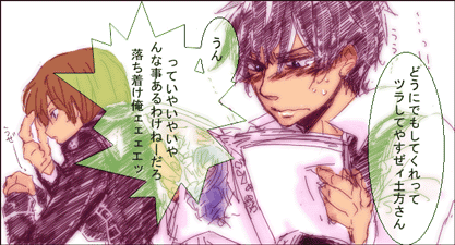 あと場合によっては6point。仕事でしか使わないけど。 でも小さいんだ。確かにちっさいんだ。 普段見慣れているせいか今まで違和感無かったけど、書き手さんのお話で8pは読み辛い部類に属されると聞いて悲鳴が出た…。ジャンルにもよるらしいけど文字の大きさは最低原寸9pは欲しいとか。そう言えば新書も9pが通常だよなぁ、と。レイアウトに厳しい御大の御本も確かに9pの18行…。だから毎回辞書並になるのね…。 まったく気付いておけよって話です。 で、今回の本は原寸9pになりました。前よりは読みやすいかな、と。 でもページ数が増える罠…。うぅ…。 PR タイトルからして銀さん!銀さんんんんんっ!!って気持ちになる。 そう、ギャップ萌えだよ、普段やる気の無い銀さんが垣間見せる本気だよ。 あんなん見せられたらホントどうにでもしてくれって思う。 そしてどうにでもなってくださいとうしろう。 あぁぁあちっさい銀さんにもきゅんきゅんします。 何、あのお子はあんなちっさいときから白夜叉なんですか。 なんつーか銀さん、ほんと…、お前様どんだけっ…! もう言葉になんねーよ!! 思う存分抱けば良いよとうしろうを!! 原稿の燃料にしようと思ったらぱねぇ程の萌えを与えられて時間を削られました…。 なんて魔力。魅力。性欲。(え) ともかく落ち着けって話です。 メルフォからのメッセありがとうございます!! 返信不要とのことですが御礼だけでも! ウッス!頑張りまっす!!